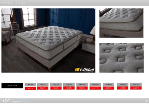 SHİLTELER/ SLEEPY 90X190 100X200 105X190 120X200 140X190 150X200 160X200 180X200 200X200 SLEEPY YATAK 6975TL 7866 TL 7866TL 9042TL 9971 TL 11127 TL 11582 TL 12758TL 13680 TL 10