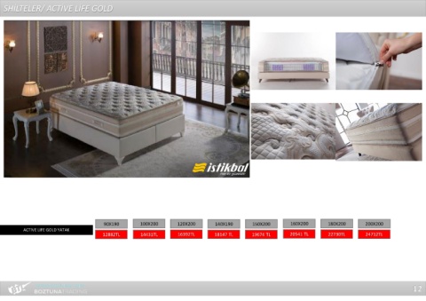 SHİLTELER/ ACTİVE LİFE GOLD 90X190 100X200 120X200 140X190 150X200 160X200 180X200 200X200 ACTIVE LIFE GOLD YATAK 12882TL 14431TL 16392TL 18147 TL 19674 TL 20541 TL 22730TL 24712TL 12