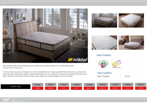 SHİLTELER/ OPTİMAL 90X190 90X200 100X200 105X200 120X200 140X200 150X200 160X200 180X200 OPTIMAL YATAK 6792TL 6999TL 7411TL 7411TL 8650TL 10095 TL 10921TL 11334 TL 12779TL 13