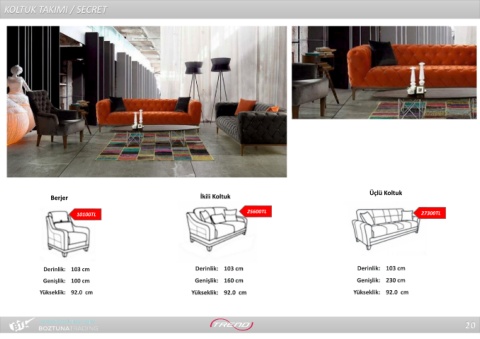 KOLTUK TAKIMI / SECRET Üçlü Koltuk Berjer İkili Koltuk 25600TL 10100TL 27300TL 20