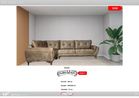 KÖŞE TAKIMI / ELA YENİ Corner 45500 TL Derinlik : 100 cm Genişlik : 300x300 cm Yükseklik : 73 cm 29