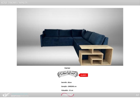 KÖŞE TAKIMI / MALTA Corner 23,000TL Derinlik : 85cm Genişlik : 240X246 cm Yükseklik : 72 cm 30