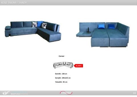 KÖŞE TAKIMI / SANDY Corner 30,300TL Derinlik : 100 cm Genişlik : 285x215 cm Yükseklik : 85 cm 38