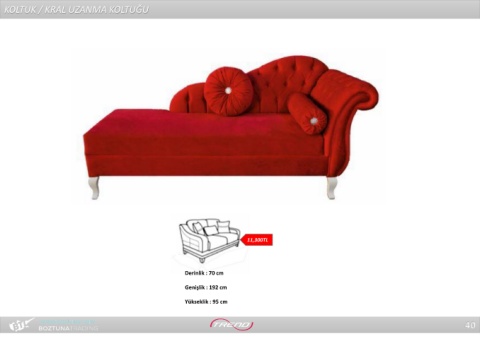 KOLTUK / KRAL UZANMA KOLTUĞU 11,300TL Derinlik : 70 cm Genişlik : 192 cm Yükseklik : 95 cm 40