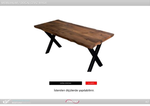 MOBİLYALAR / DOĞAL CEVİZ MASA DOĞAL CEVİZ M2 14,000TL İstenilen ölçülerde yapılabilinir. 42