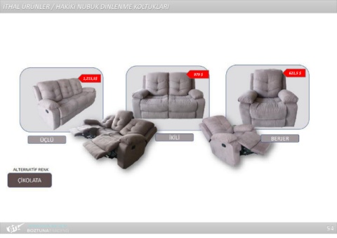 İTHAL ÜRÜNLER / HAKİKİ NUBUK DİNLENME KOLTUKLARI 979 $ 621,5 $ 1,215,5$ 54