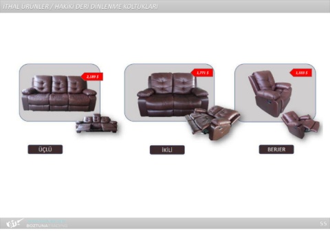 İTHAL ÜRÜNLER / HAKİKİ DERİ DİNLENME KOLTUKLARI 1,771 $ 1,333 $ 2,189 $ 55