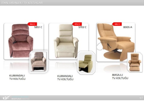 İTHAL ÜRÜNLER / TV KOLTUKLARI 962,5 $ 874,5 $ 428,5 $ 57